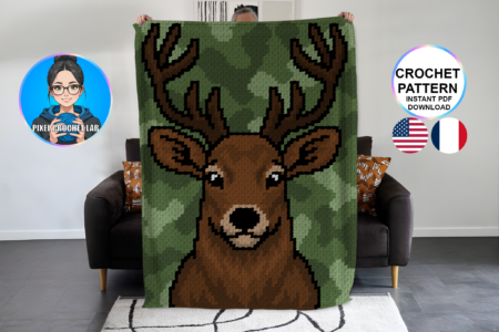 Cerf – patron de couverture C2C au crochet Réalisez cette magnifique couverture C2C au crochet représentant un Cerf majestueux. Patron PDF avec grille et instructions détaillées, parfait pour crocheteurs et crocheteuses intermédiaires. Présentation du pattern et description du motif Cerf Majestueux – patron de couverture C2C au crochet – Afghan / Graphghan au style Pixel …