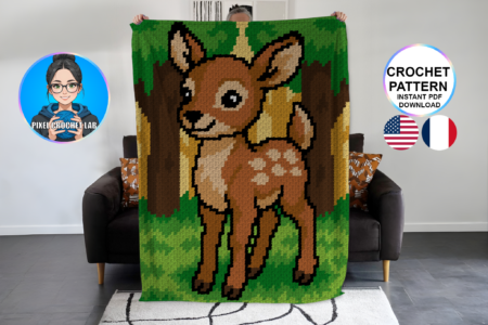 Faon / Biche / Cerf – patron de couverture C2C au crochet Réalisez cette magnifique couverture C2C au crochet représentant un petit Faon / Biche / Cerf. Patron PDF avec grille et instructions détaillées, parfait pour crocheteurs et crocheteuses intermédiaires. Présentation du pattern et description du motif Faon / Biche / Cerf – patron de …