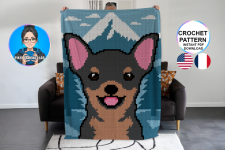 Chien Chihuahua – patron de couverture C2C au crochet Réalisez cette magnifique couverture C2C au crochet représentant un chien de la race des Chihuahua. Patron PDF avec grille et instructions détaillées, parfait pour crocheteurs et crocheteuses intermédiaires. Présentation du pattern et description du motif Chien Chihuahua – patron de couverture C2C au crochet – Afghan …