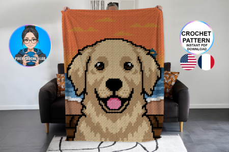 Chien Labrador / Golden Retriever – patron de couverture C2C au crochet Réalisez cette magnifique couverture C2C au crochet représentant un chien de la race des Labrador / Golden Retriever. Patron PDF avec grille et instructions détaillées, parfait pour crocheteurs et crocheteuses intermédiaires. Présentation du pattern et description du motif Chien Labrador / Golden Retriever …