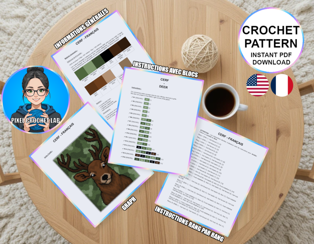 Conçu pour allier plaisir de création et rendu visuel impactant, ce patron PDF séduira les amateurs de crochet, de motifs animaliers et de pixel art.
