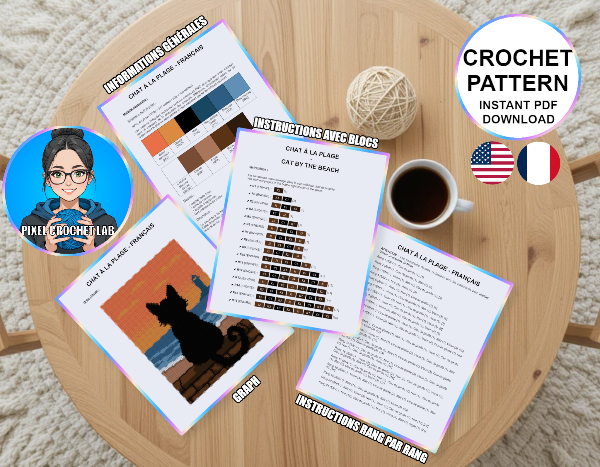 Ainsi, vous disposez de tout pour réaliser votre couverture C2C au crochet. Vous aurez à votre disposition une version en français et une autre en anglais.
