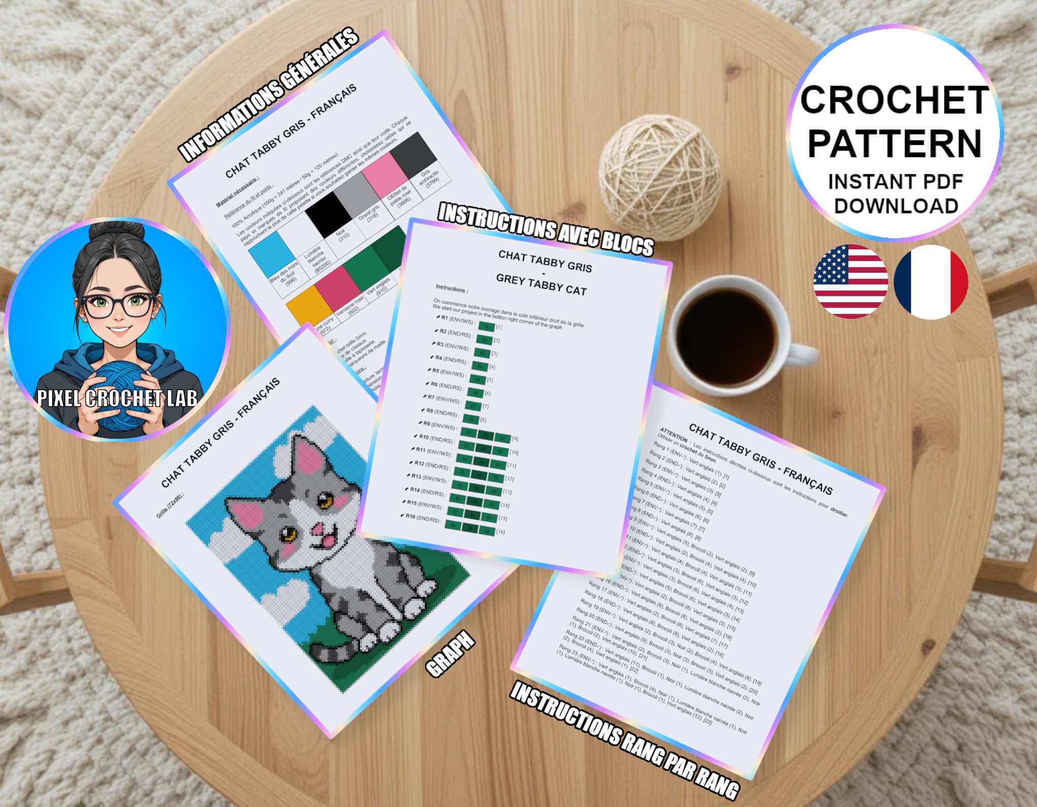 Ainsi, vous disposez de tout pour réaliser votre couverture C2C au crochet. Vous aurez à votre disposition une version en français et une autre en anglais.