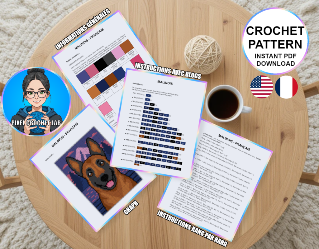 Conçu pour allier plaisir de création et rendu visuel impactant, ce patron PDF séduira les amateurs de crochet, d’animaux et de pixel art.