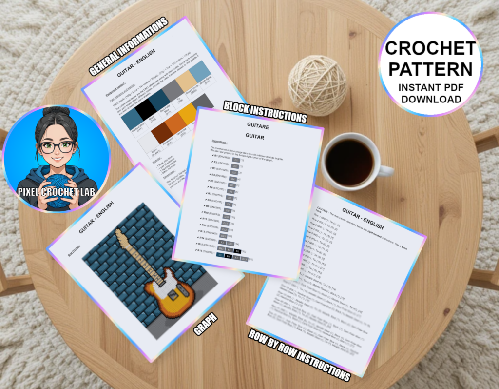 Bring a dose of rhythm and warmth to your creations with this C2C crochet blanket pattern featuring an Iconic Electric Guitar, depicted in pixel art. A symbol of versatility, musical history, and country spirit, this legendary instrument exudes a vibrant and charismatic presence, instantly giving a unique soul and groove to the design.