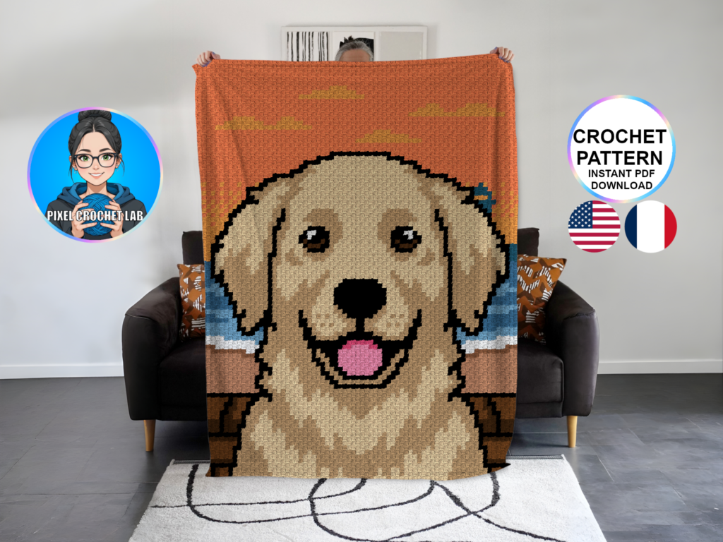 Labrador / Golden Retriever dog – C2C Crochet Blanket Pattern – Afghan / Graphghan in Pixel Art Style – Baby, Child & Adult Blanket (PDF format)